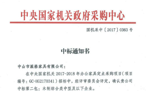 成為中央國家機關家具定點供應商