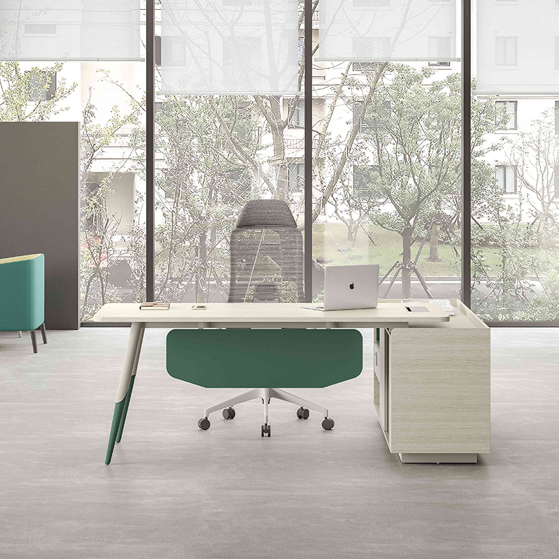 1、基材:符合E0級標準的MFC板; 2、主臺面直紋灰橡,同色封邊; 3、副柜前、后側板、背板為直紋灰橡; 4、擋板和活動木框為橄欖綠色,其余子午灰 色;5、五金臺腳子午灰+橄欖綠; 6、班臺可左右互換。
